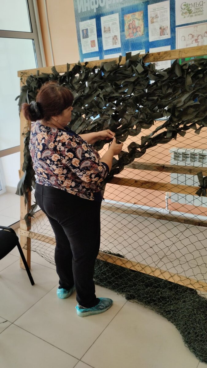 Жители Аминево плетут 12-метровую маскировочную сеть около двух недель, работа очень кропотливая.