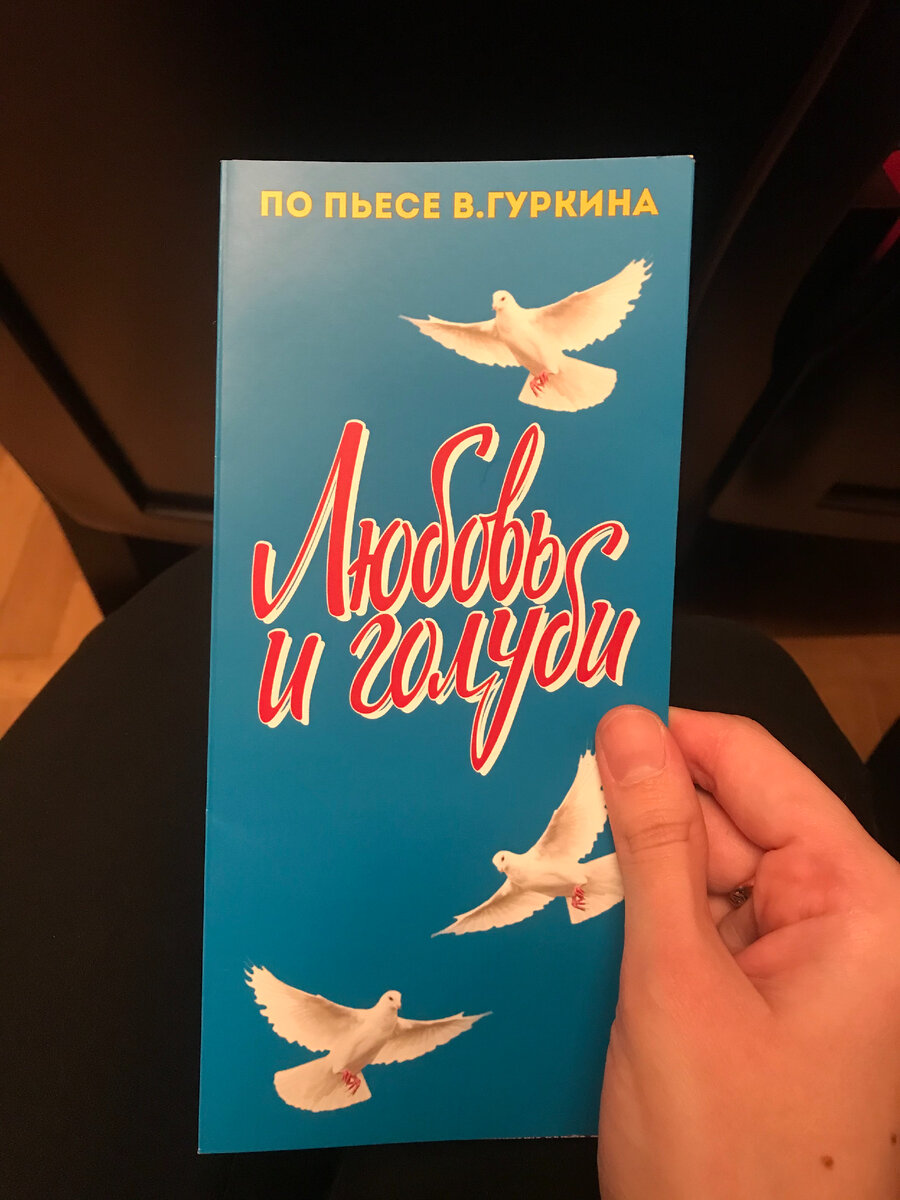 Сегодня, 25 апреля, на сцене нашего театра играют «Любовь и голуби» с Жанной Эплле. Я уже сбилась в который раз к нам приезжает этот спектакль, с разными составами. Мне удалось побывать на спектакле 8 октября 2021 года. " И спектакль хороший, и состав отличный. Но все же все первое отделение подсознательно сравнивала с фильмом. Хотя спектакль мне тоже понравился, особенно тетя Шура (Раиса Рязанова) и дядя Митя (Михаил Жигалов). Хочу заметить, что нам обещали один состав, а приехал несколько другой, но так бывает. Обещали: Ольгу Проковьеву, Анатолия Журавлева, Михаила Жигалова, Раису Рязанову, Татьяну Догилеву, Марию Голубкину. В тот вечер играли: