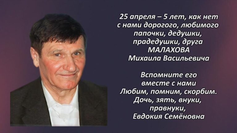 25 апреля – 5 лет, как нет с нами дорогого, любимого папочки, дедушки, прадедушки, друга МАЛАХОВА Михаила Васильевича Светлой памяти, папа, желаю,