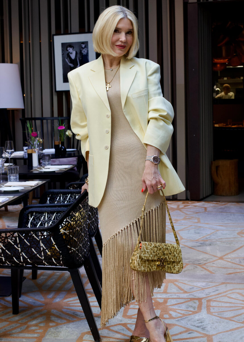 Петра Динерс – истинный образец вкуса и аристократизма. Большую часть времени модница посвящает любимому делу – созданию красивых и современных ансамблей в элегантном стиле. Сегодня наслаждаемся ее роскошными образами, которые легко повторить! В гардеробе нашей героини есть много платьев. Очень эффектно выглядит модель с асимметрией, бахрома повышает градус стиля. Жакет удлиненного кроя станет отличным дополнением как кэжуального наряда, так и вечернего. Блогер 50+ часто подчеркивает талию поясом. Полосатое платье, кардиган, босоножки на каблуке, сумка, бижутерия и ничего лишнего! Весной без жилета – никуда. Он прекрасно вписывается в многослойные сеты, при желании можно выбрать вариант со стройнящим принтом. Немка умеет грамотно сочетать фактуры. Блузка из гладкой атласной ткани идет в дуэте с джинсовыми брюками. Вязаный кардиган, фактурная сумка и кеды ничуть не выбиваются из образа. Лавандовый оттенок омолаживает, дарит ощущение легкости и гармонии. Свободное платье не сковывает дви