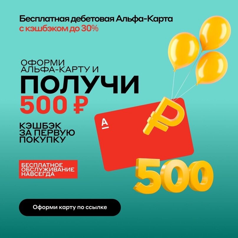 Получаем 500р за оформление бесплатной и полезной дебетовой Альфа-Карты.