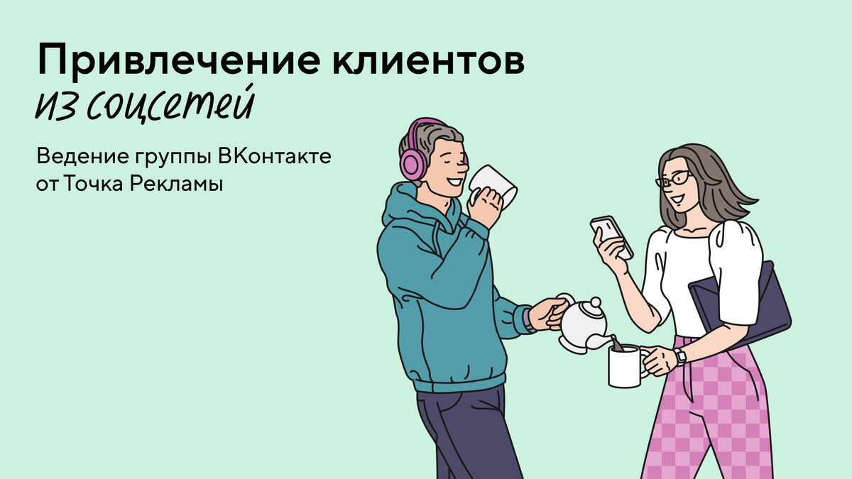 О пользе групп во ВКонтакте слышали все владельцы бизнеса, но многие ли пользуются этим инструментом? Часто он отнимает массу времени и сил: приходится отвлекаться от насущных задач, придумывать темы, писать посты или искать фрилансеров, которые не всегда надёжны. У большинства предпринимателей просто нет времени, чтобы осваивать новую отрасль и превращаться в SMM-щиков. Намного проще делегировать такие задачи Точка Рекламе. Для этого мы запустили новую услугу — оформление и ведение сообщества во ВКонтакте. Предпринимателю достаточно заполнить бриф — подробно рассказать о своем бизнесе: это позволит создать действительно интересный контент, который поможет выделиться среди конкурентов. Как Точка Реклама помогает вести сообщество ВКонтакте Чтобы привлекать клиентов из соцсетей, нужна целая команда: Все эти специалисты есть в Точка Рекламе. Кроме того, работая с агентством, можно не опасаться, что ответственный за ведение соцсетей заболеет, переключится на другой проект или остановит раб