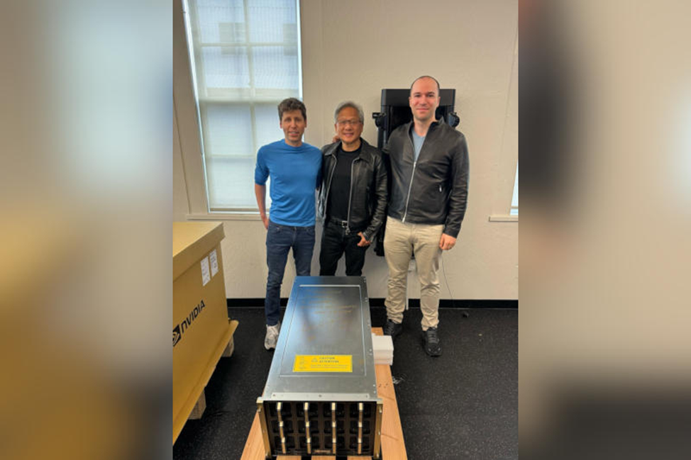 Глава корпорации NVIDIA Дженсен Хуанг лично доставил первый ускоритель вычислений в сфере искусственного интеллекта DGX H200 первому покупателю. Впрочем, покупатель этот был не совсем обычным – им оказался Сэм Альтман, руководитель компании OpenAI, являющейся одним из лидеров на рынке генеративных ИИ-решений. Фотографии встречи опубликовал в соцсети X (Twitter) один из учредителей OpenAI Грег Брокман. DGX H200 – это новейший ускоритель ИИ-вычислений NVIDIA, оснащенный 141 гигабайтом памяти HBM3e. Использование столь производительного оборудования позволит OpenAI ускорить работу над нейросетью GPT-5. NVIDIA надеется избежать возникновения дефицита подобных решений на рынке, но, как считают эксперты, даже если сроки ожидания заказанных клиентами H200 будут не столь длительными, как в случае H100, оперативно удовлетворить спрос «зеленые» все равно не смогут, поскольку в мире наблюдается настоящий ИИ-бум, в котором участвует множество крупных технологических компаний. К счастью для геймеро