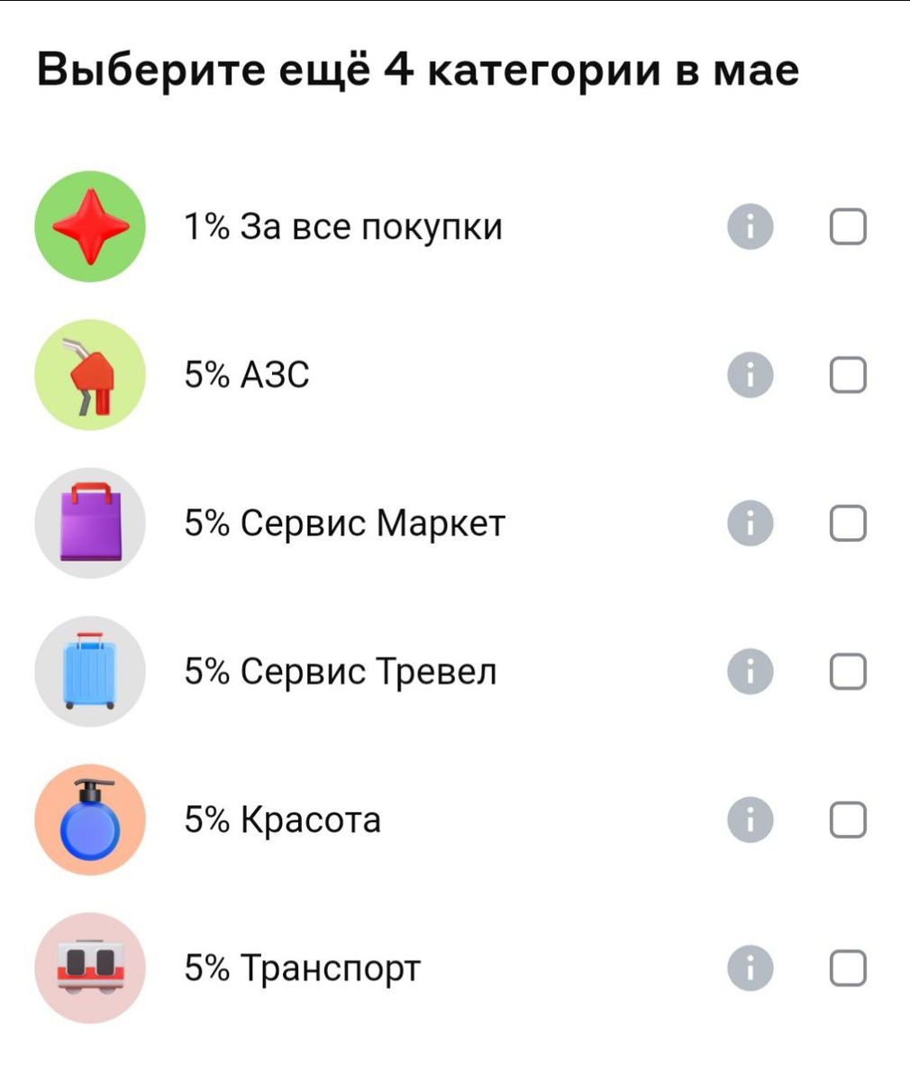 Люблю я экономить и для большей выгоды по кешбэку завела несколько карт. Ими я пользуюсь в зависимости от того, какая карта принесёт больше выгоды. Если по одной карте у меня кешбэк на кафе и рестораны 5%, а по другой 1%, я выберу ту, что выгоднее. А по одной из карт у меня кешбэк 25% на продукты. Конечно, я буду в продуктовых магазинах платить только ей. Рассмотрим кешбэк от лидирующих банков. Сейчас конец месяца, а значит пора выбирать категории повышенного кешбэка на май. Люблю Альфу, для меня это основная карта. На втором месте Тинькофф, а остальные по ситуации. Но в этом месяце банк меня не порадовал. В Альфе мне выпали на выбор: 5% АЗС, 5% Сервис Маркет, 5% сервис Тревел, 5% красота, 5% транспорт. И также в барабане выпали 10% на Сервис Маркет. Итого на Маркет у меня 15%, это Альфа-Маркет, перейти в него можно прямо из приложения. Там в основном продаётся техника, вряд ли я воспользуюсь их предложением. Также Альфа предлагает новую акцию: если на текущих счетах хранить от 10 тыс.