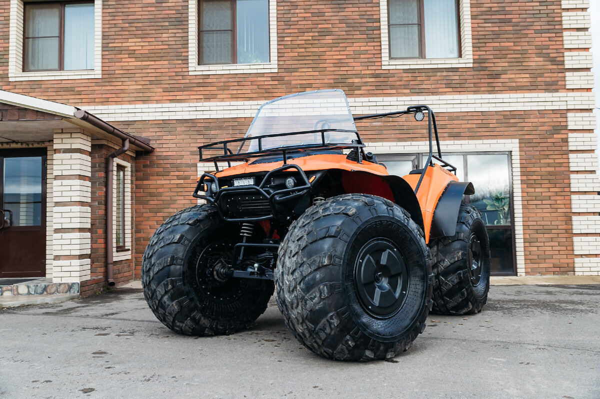 На вездеход установлены передние и задние дисковые тормоза, с управлением на руле (исключены все педали), а кузов изготовлен из морозостойкого (до -70 С) полиэтилена низкого давления (ПНД). Заводские шины, качественная оптика и обогревы вкруг (включая ручки руля, курок газа и, конечно, сиденья), дополняют ком