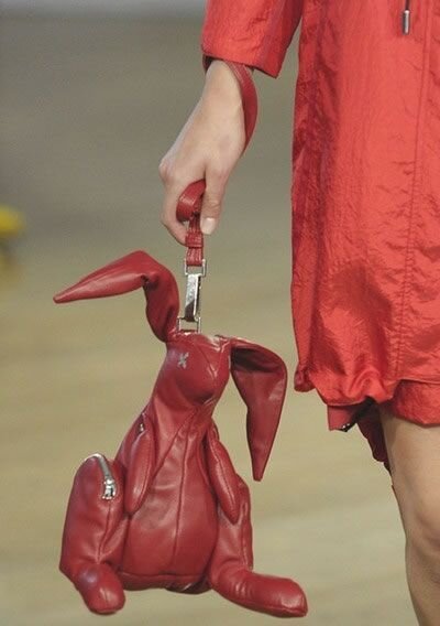 Наверняка, кому-то сейчас захотелось пожалеть этого зайчика, да? Но не торопитесь… Не торопитесь, потому что вы еще собачку не видели. Ей гораздо труднее, чем зайчику. А еще котик есть. С виду он довольно безмятежный, но у него цинично расстегивается живот, и выглядит это ужасно! Препарированного котика мы вам даже показывать не будем. Но таков мир женских сумочек. Суровый и беспощадный. И выживает в этом мире каждый, как может. На препаратах, таблетках, лекарствах… Впрочем, не будем демонизировать женщин и их сумки. Некоторые женские сумки могут весьма полезными. Например, как источники электроэнергии… Или источники здоровья зубов и полости рта. А некоторые просто красивы в своем белом минимализме! Бытует мнение, что в женских сумочках царит сущий хаос, что там сам черт ногу сломит. Это не так. В некоторых сумочках хаосу элементарно негде поместиться! Но вернемся к красоте. К аляповатой, вызывающе яркой, цветочной… Или сдержанной, с классическими геометрическими формами.