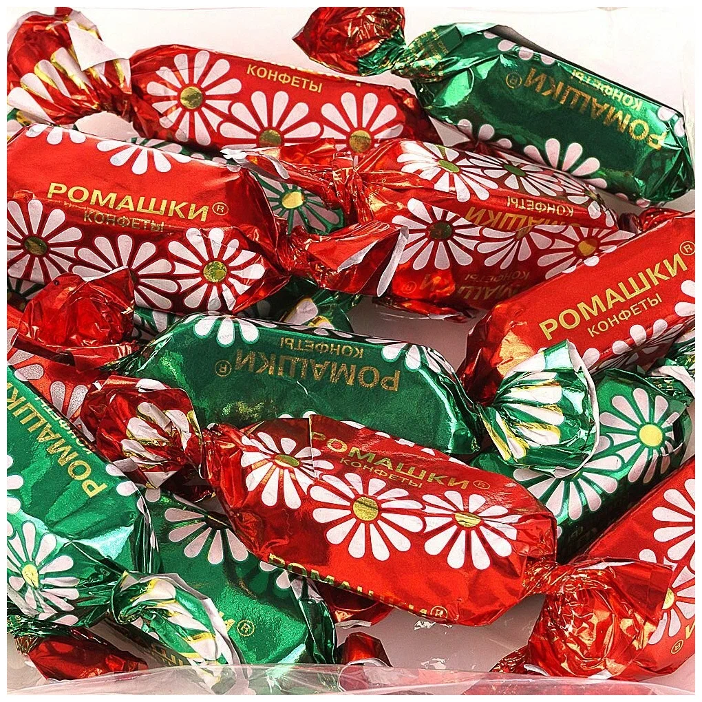 Я зашел в пятерочку и обнаружил там конфеты, которые мне очень напомнили детство. В зеленых и красных фантиках с ромашками, они вызвали во мне приятные воспоминания. Вспомнилось, как папа раньше любил есть эти конфеты не с чаем, а с молоком, и мне захотелось взять их для себя.