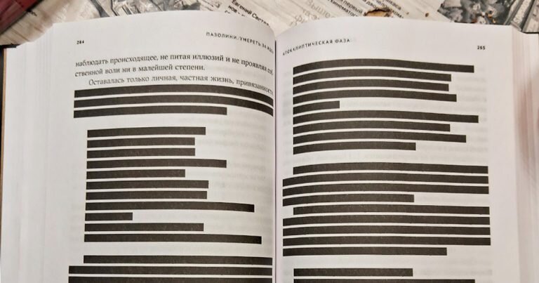 Издательство АСТ совсем недавно выпустило русский перевод биографии итальянского режиссера Пьера Паоло Пазолини, написанной Роберто Карнеро. Книга называется «Пазолини. Умереть за идеи». Если книга запечатана, то покупатель сразу и не узнает, какой сюрприз его ждет внутри — десятки страниц зацензурированного текста, закрытого черными плашками. Это фрагменты, рассказывающие о сексуальности и личных отношениях Пазолини, который, как известно, был открытым геем. Под цензуру попало и стихотворение, посвященное актеру Нинетто Даволи, снимавшемуся в фильмах режиссера. Некоторые развороты закрыты от глаз читателей почти полностью, на других страницах спрятаны только отдельные куски текста. По подсчетам «Осторожно, новости», под цензуру попала примерно пятая часть биографии. На сайте издательства, впрочем, честно указано, что текст в издании приводится не полностью: «Обращаем ваше внимание, что текст книги был сокращен в связи с 478 федеральным законом». Это закон о запрете пропаганды нетрадиц