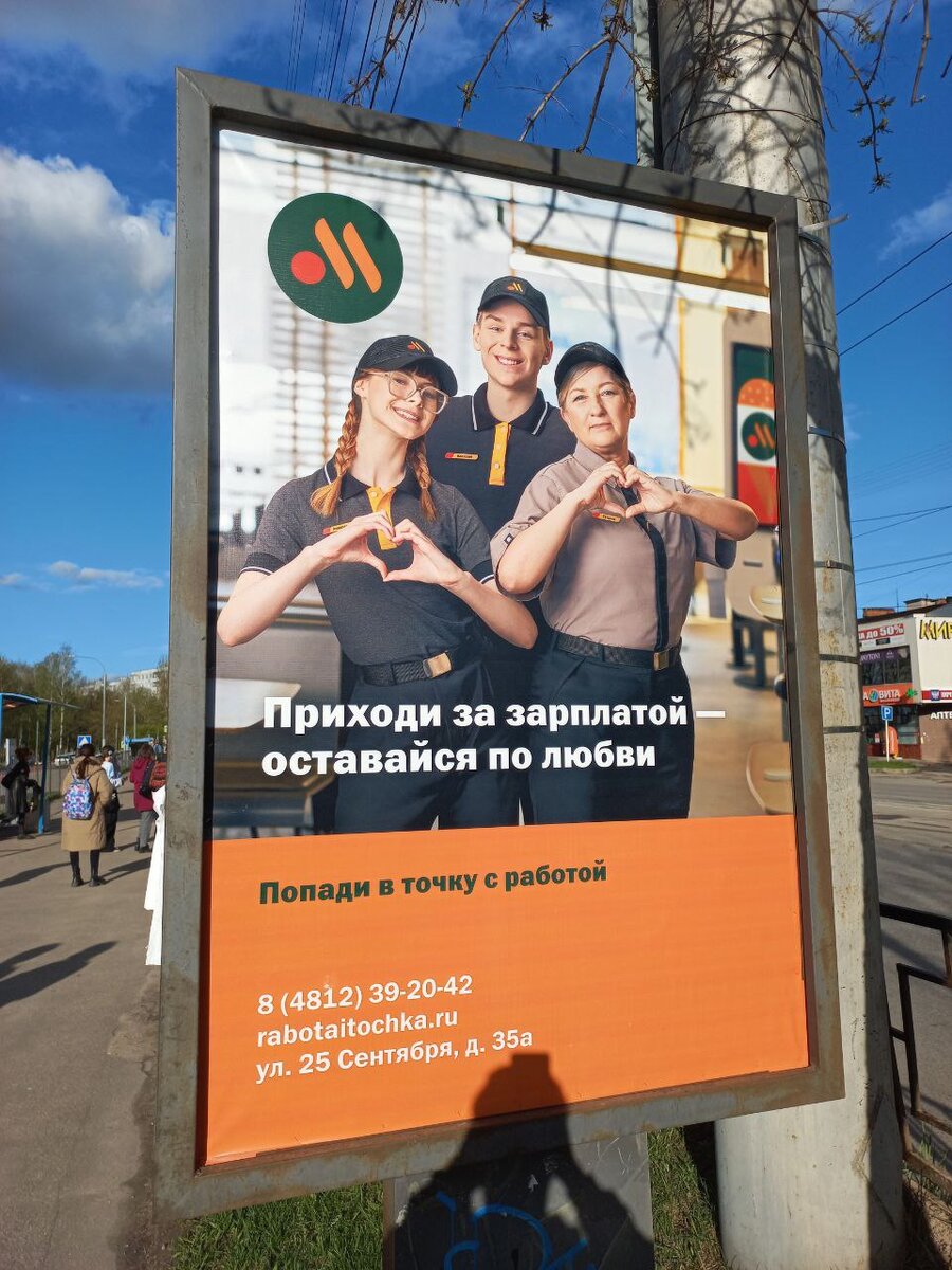 "Приходи за зарплатой" - гласит слоган - "оставайся по любви".