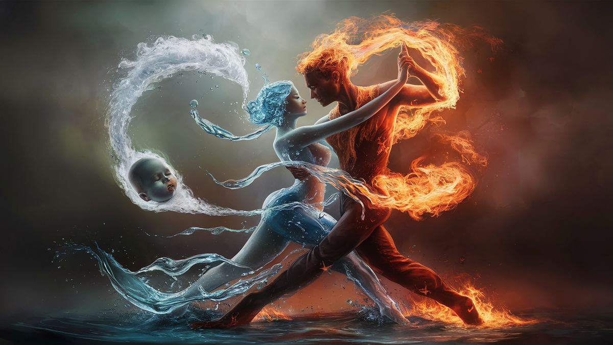 Огонь полюбил воду жгучей, страстной любовью, несмотря на то, что они принадлежали к разным стихиям, к разным мирам. Вода тоже полюбила огонь, но быть вместе им не суждено было.