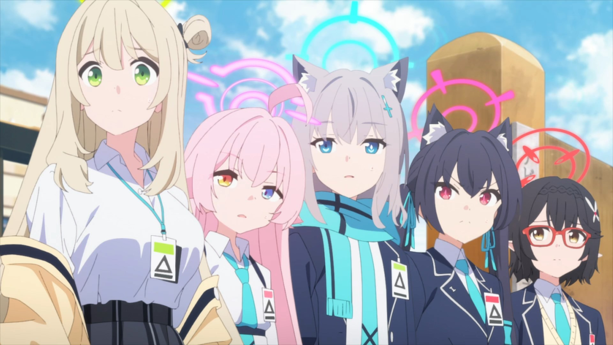 Похоже, что данный тайтл нацелен чисто на уже имеющихся и потенциальных фанатов одноимённой гача-игры на мобилках. Я, конечно, играл в «Аркнайтс», но это мне тут никак не помогает (да и у него своя анимешка есть, которую я так и не стал смотреть). Но, по-моему, в сравнении с ним этот сериал какой-то максимально хаотичный. В некоем местами постапокалиптично выглядящем городе есть много практически независимых академгородков. А над ними стоит Общий Студсовет в качестве органа управления. Но когда пропадает его президент, начинаются проблемы и беспорядки. Пять девочек, последние ученицы школы района Абидос, постепенно превращающегося в пустыню, отчаянно борются с двумя напастями: настырно атакующими рейдерскими бандами и огроменным денежным долгом. Когда ситуация начинает казаться безвыходной, к ним приходит подмога в виде Учителя из центрального управления. Вместе они начинают пытаться выправить положение дел. У меня, на самом деле, не такие большие проблемы с тем, что здесь мало что пон