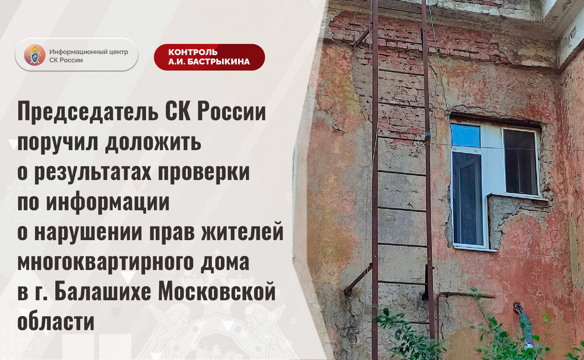Председатель СК России поручил доложить о результатах проверки по информации о нарушении прав жителей многоквартирного дома в г. Балашихе Московской области