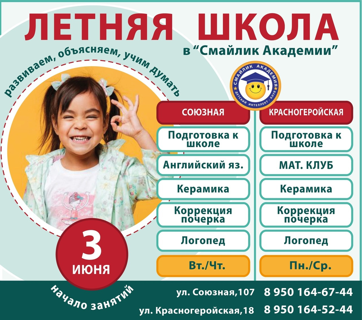 Успейте записать ребенка сейчас, чтобы гарантированно организовать для него полезный и интересный досуг во время летних каникул в "Смайлик Академии"!