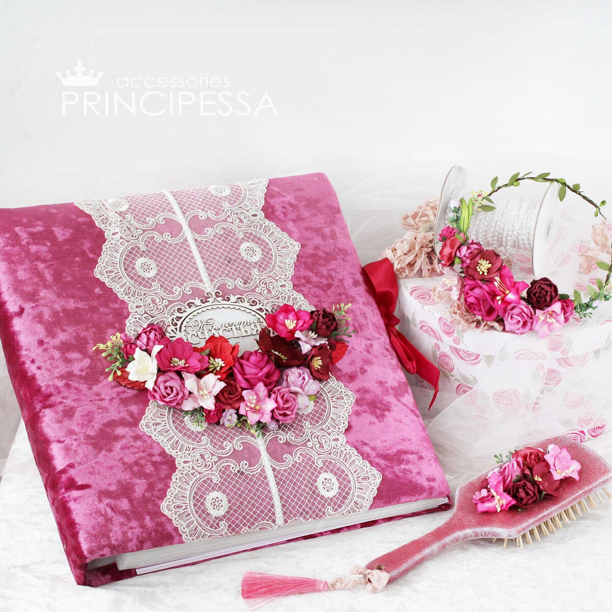 В набор входило: -фотоальбом -расческа для волос -веночек на голову Набор выполнен на заказ / без повтора Фотоальбом большой 32х32см с магнитными листами Фотоальбом обтянут бархатом и кружевом Деревянная расческа покрашена вручную и украшена цветами Веночек для волос из бумажных цветов (Таиланд) ______________________________ Мои другие источники, где я делюсь своим творчеством: Instagram: https://www.instagram.com/solis.iness Ярмарка мастеров: https://www.livemaster.ru/principessa-si Вконтакте: https://vk.com/solis_iness Telegram: https://t.me/solis_iness Pinterest: https://ru.pinterest.com/solis_iness Boosty.to: https://boosty.to/solis.iness You Tube: https://www.youtube.com/c/PRINCIPESSAaccessories