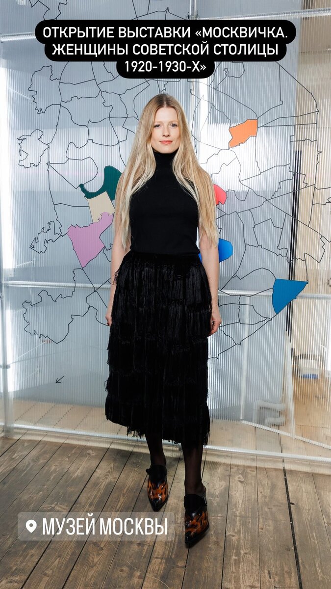 Супруга генерального директора Первого канала Константина Эрнста Софья посетила выставку «Москвичка. Женщины советской столицы 1920-1930-х» в Музее Москвы. 36-летняя актриса выбрала простой, но стильный образ из черного топа без рукавов и юбки длины миди с бахромой. Софья дополнила образ ботильонами на шпильке с принтом в виде языков пламени, черными колготками и минималистичными серебристыми сережками. Эрнст оставила длинные волосы распущенными и в очередной продемонстрировала новое светлое окрашивание. В соцсетях актриса высоко оценила выставку, которая рассказывает, как менялись жизнь и образ москвички в первые десятилетия советской власти, через призму художественных произведений. Эрнст редко выходит в свет, отдавая предпочтения мероприятиям со своим участием. Напомним, Софья и продюсер Константин Эрнст вместе с 2014 года. Их дочки Эрика и Кира родились в 2016 и 2017 году соответственно, а в 2020 году у супругов появился сын Лев. Пара оберегала детей от публичности и не показывала
