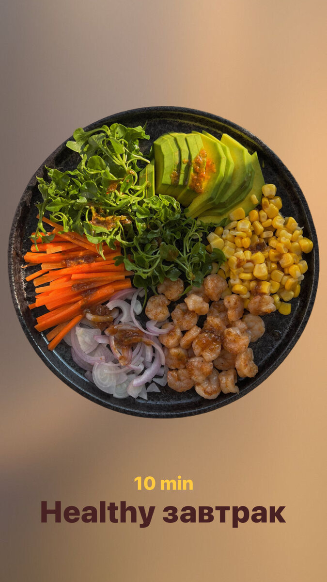 Ингредиенты: -листья любимого салата -креветки -кукуруза -авокадо -морковь -красный лук (по желанию) Для соуса: -чёрный перец -соевый соус -цедра и сок лайма -чеснок -мёд Готовим😋 1.Слегка маринуем креветки 2.Замешиваем наш соус 3.Нарезаем ингредиенты 4.Собираем Healthy завтрак Приятного аппетита 😋 Еще больше рецептов в телеграмм канале По вкусу - вкусно.