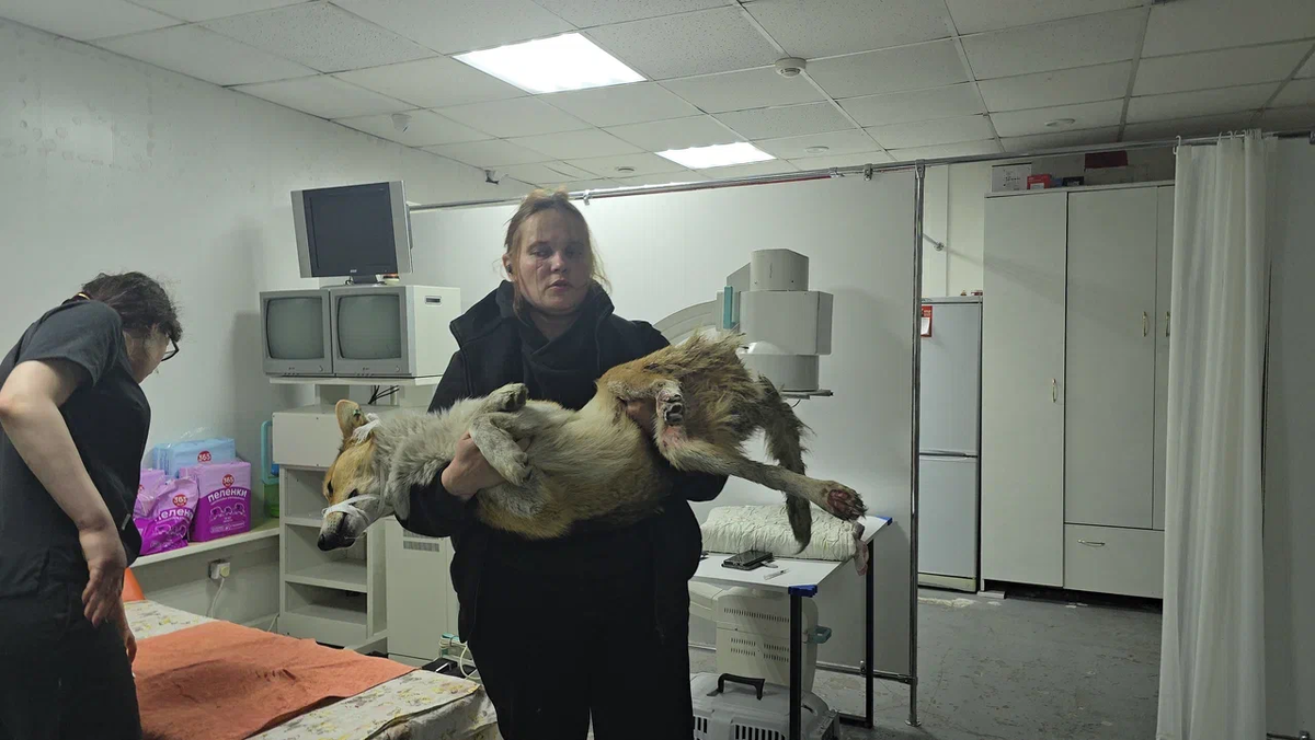Апреля в любом случае нужно было везти в клинику. Ужасные раны на его задних лапках срочно нужно было обработать, да и в целом, сделать УЗИ и посмотреть, какие ещё последствия жизни в этом аду есть у пёсика. Оказалось, что у него воспалительный процесс в мочевом пузыре.