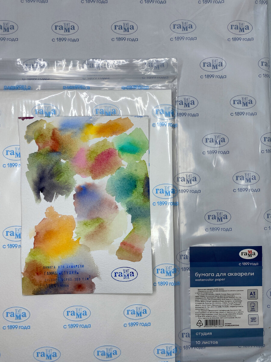 Бумага для акварели 100% хлопок «Студия» от АО Гамма, среднее зерно, 300г/м.