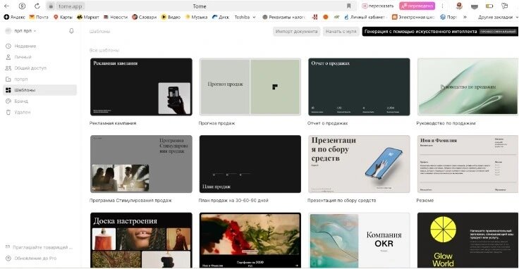Tom.app — зарубежный сервис для создания презентаций с нейросетями