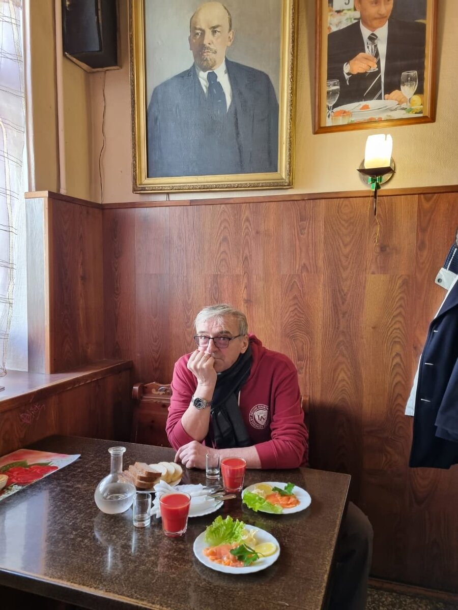 Дескать, каждый четверг приходит в " Маяк" один человек. Берёт графинчик с водочкой, два стопарика и лёгкую закуску. Как на снимке!