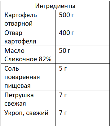 Посчитано: блюдо диетическое пюре картофельное на картофельном отваре