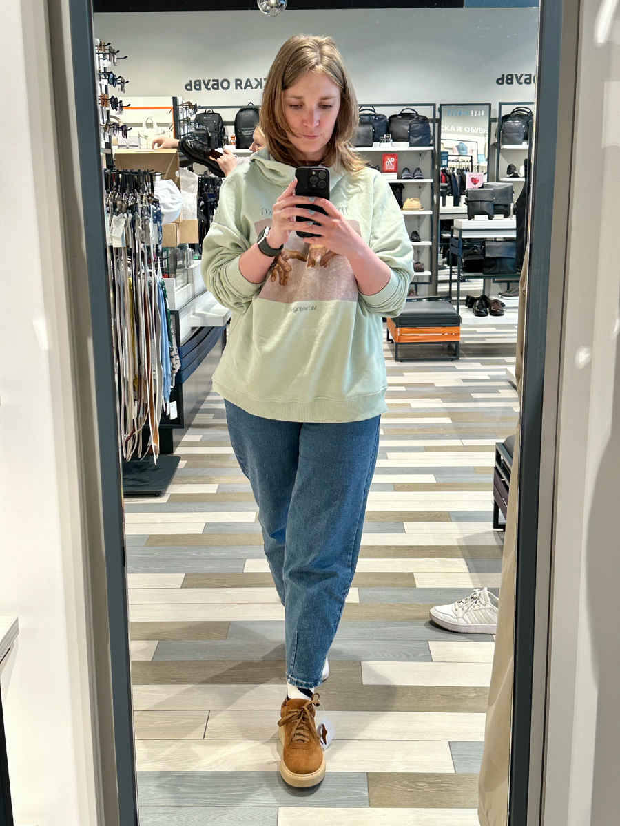 Отоварила сертификат, который свекровь подарила на 8 Марта, и купила себе классные замшевые кеды. Цена, конечно, кусается, но мне они со скидкой и сертификатом достались за 4 500 рублей :)