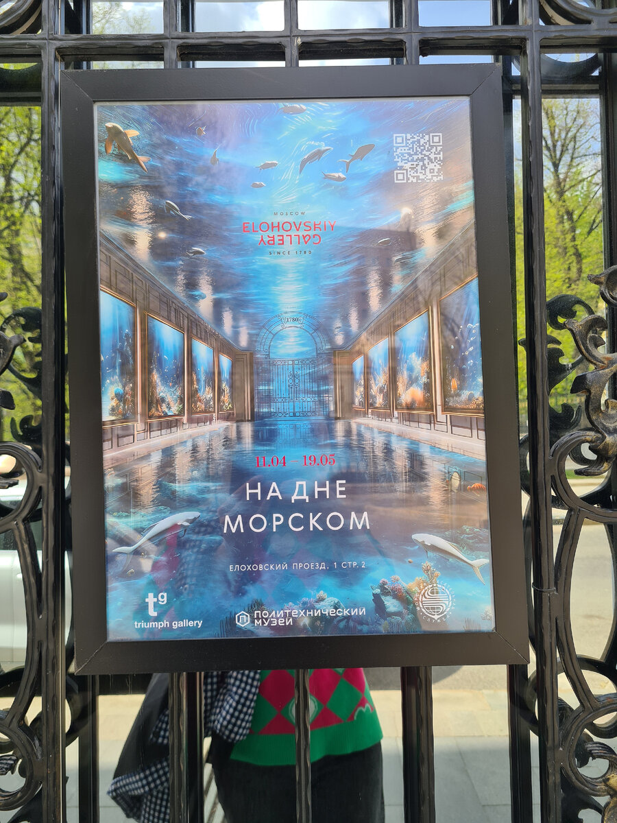 Культурный центр Elohovskiy gallery находится на месте перестроенного купеческого дома XIX века. Самой яркой деталью фасада галереи, открытой в 2022 году, стала отреставрированная кованая ограда. Выставка “На дне морском” организована совместно с Политехническим музеем, Морской спасательной службой и галереей «Триумф». Симбиоз науки и искусства, подумала я, необычно, оригинально, надо сходить. Восемь залов выстраивают маршрут путешествия в подводный мир. Выставка дает возможность поразмышлять о мощи водной стихии, рождении жизни в глубинах океана, кораблекрушениях, памяти и забвении… Вода — основа жизни, первичный элемент мироздания вселенной. Художники воплотили свои идеи в живописи, скульптуре, инсталляциях, используя богатый спектр материалов: от эпоксидной смолы воздушного пластилина до камня и глины. Политехнический музей предоставил для выставки ряд экспонатов:· ⚙️Модель «Паровая судовая сдвоенная машина с качающимися цилиндрами» 1903 года ⚙️Морская зрительная т