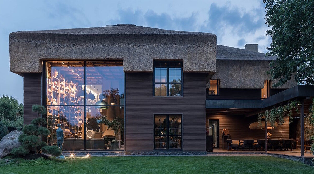 Уникальный и самобытный проект Шкруб - это современный дом с соломенной крышей, спроектированный архитектором Сергеем Махно для себя и своей семьи. Такая необычная архитектура и интерьер получились в результате слияния современного стиля и японской философии ваби-саби, поклонником которой является архитектор. Давайте заглянем внутрь и рассмотрим некоторые элементы и детали дома. Проект Шкруб полностью соответствует принципам ваби-саби: монументальная соломенная крыша, гордо нависающая над деревянными стенами дома, грубая глиняная отделка и аутентичные предметы интерьера. Когда вы только попадаете на территорию, то сразу же впечатляетесь уникальным подходом Сергея к дизайну и потрясающим экстерьером. С самого порога впечатляет сад, который можно охарактеризовать скорее как райское убежище. Это место столь же необычно, как и сам дом: здесь вишни соседствуют с клёнами, а сад из камней в японском стиле украшает зооморфная керамика и современные статуи. Это место, где вы можете провести вре