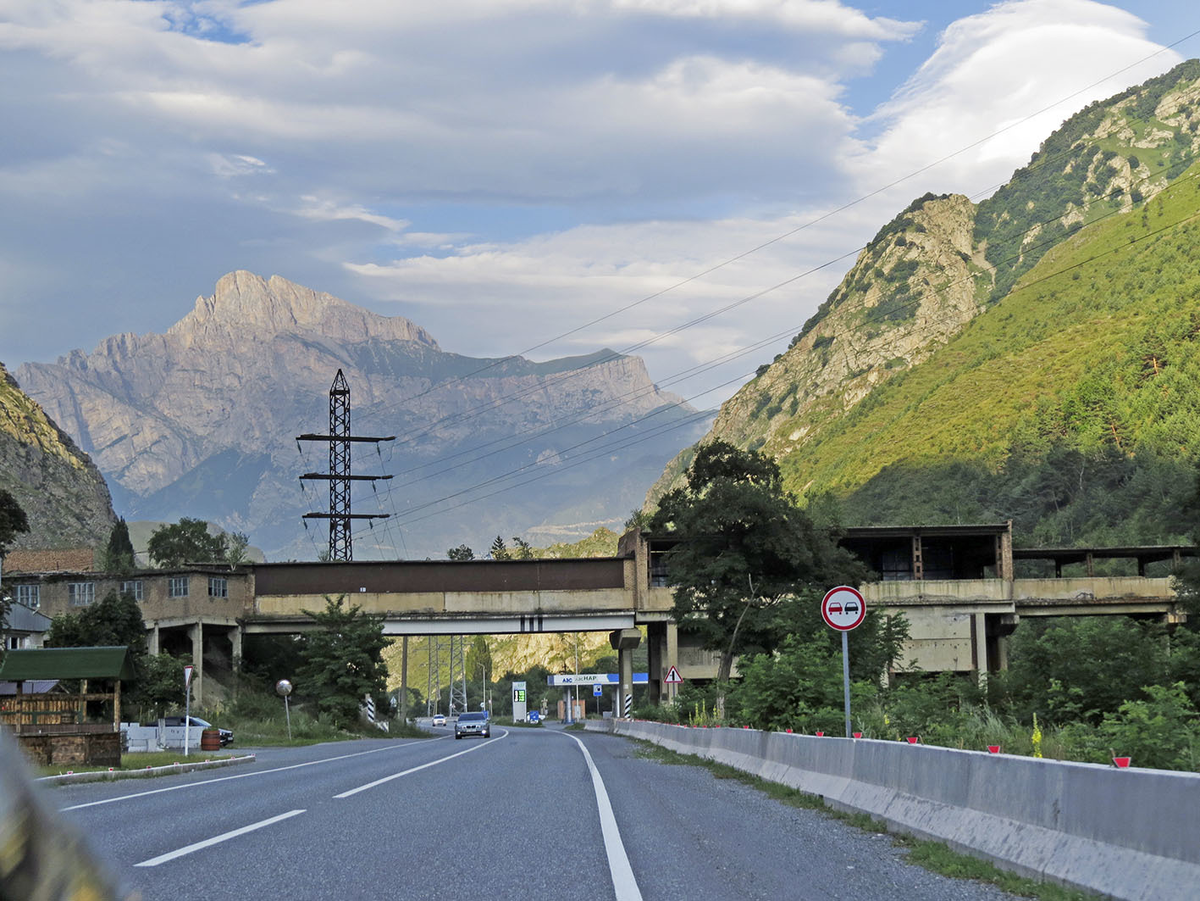 Внизу грохочет Ардон, и по правому берегу идёт, ныряя в тоннели, Транскам, а по левому тянется единственная улица Мизура. Насколько я понимаю - безымянная, как в одноуличных деревеньках вдоль русских дорог: