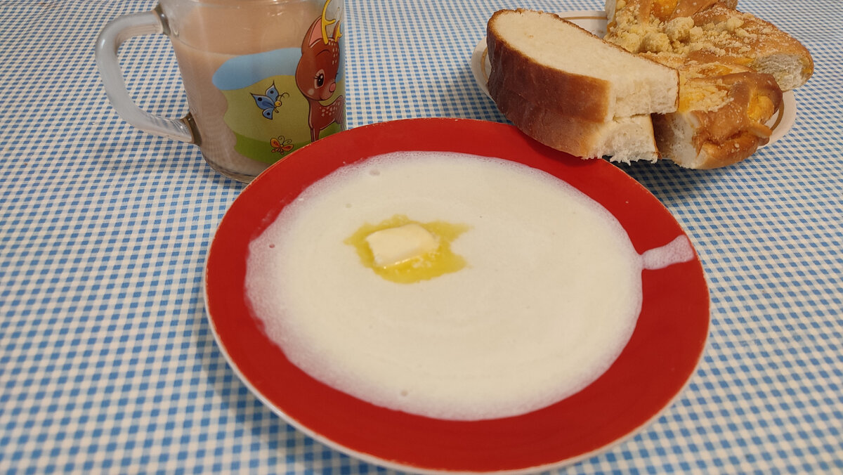 Дочка пока также не посещает садик. И так как она любит кашки, сегодня у нас на завтрак манка. Наверное это её самая любимая каша 😍.