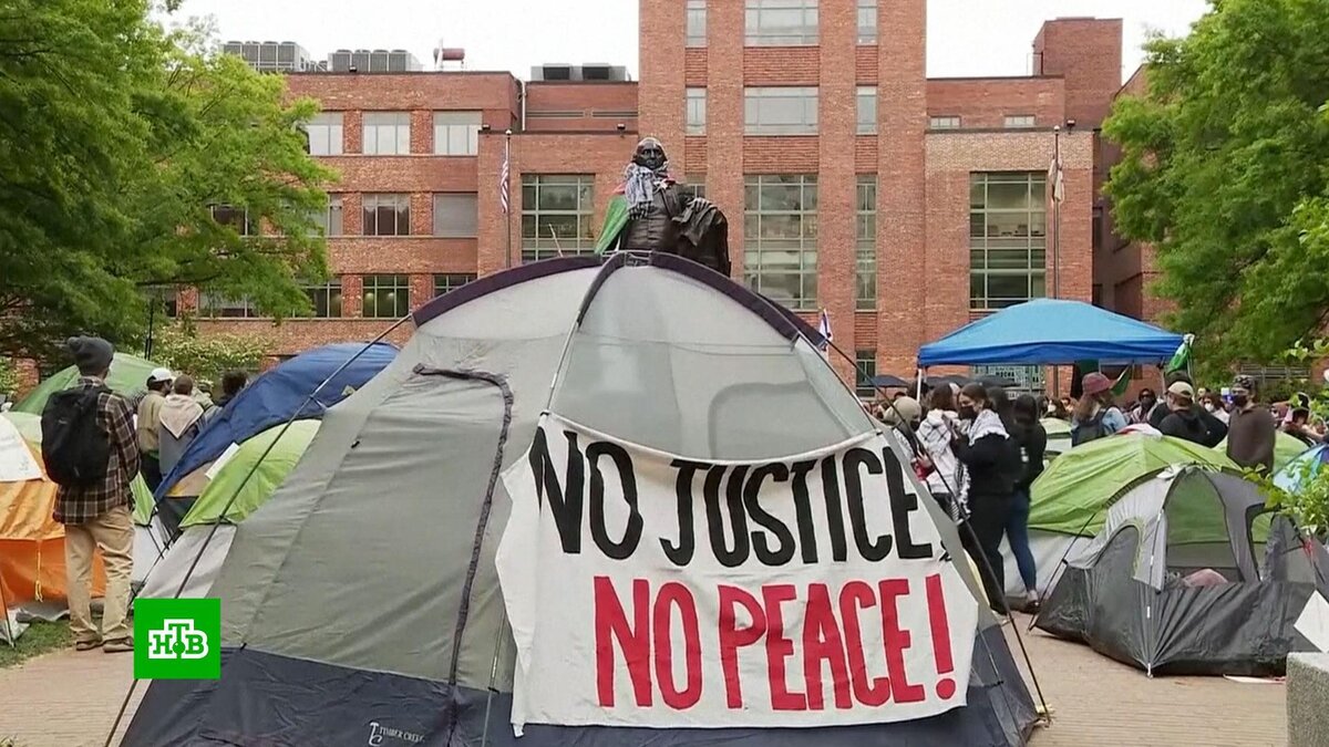 [ Смотреть видео на сайте НТВ ] В США набирают обороты студенческие протесты в поддержку Палестины. Митингующие добрались до столицы — Вашингтона. Акция прошла в крупнейшем вузе столицы — университете Джорджа Вашингтона. В ней приняли участие десятки студентов. Они разбили палаточный городок рядом с одним из кампусов. На митинге также присутствовали активисты, которые выступают за Израиль, однако конфликтов между протестующими не было. А вот в Техасском университете демонстрация прошла не так мирно. Там акция переросла в стычки с силовиками. Задержали более 20 человек. Губернатор штата заявил, что митингующих отчислят и отравят за решетку. Задержаниями закончилась и акция в Атланте. Вместе со студентами там арестовали профессора университета. Волна пропалестинских протестов сотрясает Штаты уже несколько дней — с момента, как власти одобрили новый пакет помощи Израилю. Один из крупнейших митингов состоялся в Колумбийском университете. Там арестовали более 100 человек. Однако студенты в