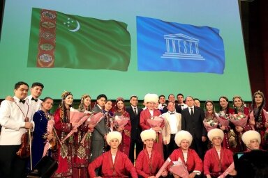 Мастера искусств Туркменистана презентовали туркменскую культуру в штаб-квартире ЮНЕСКО. 24 апреля в конференц-зале штаб-квартиры ЮНЕСКОd в Париже состоялся концерт мастеров культуры и искусств Туркменистана в рамках совместного празднования с ЮНЕСКО и ТЮРКСОЙ 300-летия со дня рождения Махтумкули. Выступившие в ходе торжественного открытия концерта председатель Исполнительного совета ЮНЕСКО Вера Эль-Хури Лякёй, директор Центра всемирного наследия ЮНЕСКО Лазар Элунду Ассомо, генеральный директор ТЮРКСОЙ Султан Раев, а также представители Туркменистана подчеркивали, что культурный обмен является одним из важнейших аспектов международного сотрудничества, что содействует сближению народов и взаимообогащению культур. Программу концерта составили произведения из народного музыкального наследия, песни на слова великого поэта Махтумкули Фраги, сочинения выдающихся туркменских композиторов – Нуры Халмаммедова, Данатара Овезова, Нуры Мухадова, классическая и эстрадная музыка, фольклорно-танцевал