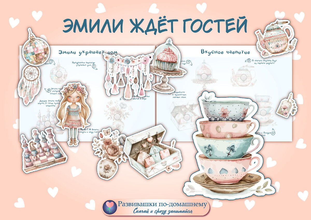 Обе игры можно объединить и играть по сценарию: Сначала Эмили готовится к приёму гостей (что необходимо подготовить, чтобы вечер/праздник удался):