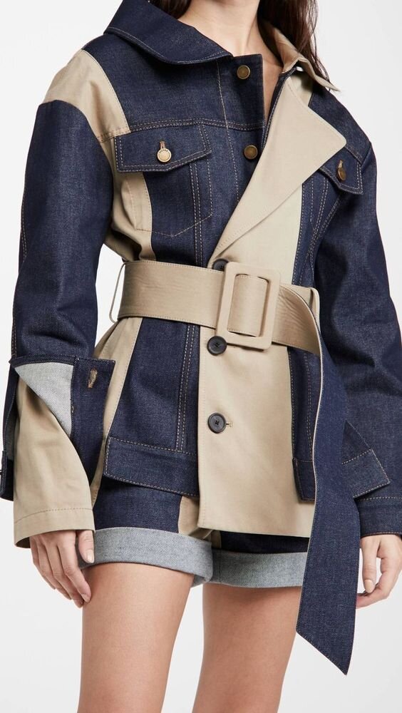 Собрала небольшую подборку для вдохновения. Здесь, помимо соединения разных элементов верхней одежды, прием с соединением разных тканей в одном изделии. Замечательный прием, когда не хватило ткани или остатки от кроя позволяют создать такие уникальные вещи.