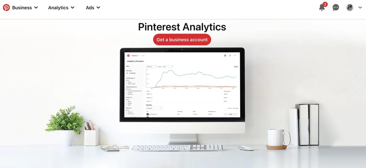 Pinterest Analytics — это бесплатный, но мощный встроенный инструмент, предоставляемый Pinterest, чтобы помочь пользователям оценить эффективность их работы на платформе. Pinterest Analytics позволяет измерять различные показатели, включая, но не ограничиваясь, показами, сохранениями, кликами по пинам и многими другими. Таким образом, вы сможете изменить свою стратегию, чтобы лучше удовлетворить потребности пользователей. Чтобы получить доступ к Pinterest Analytics, вам понадобится бизнес-аккаунт, который открывает возможность создавать рекламу и продвигать пины.