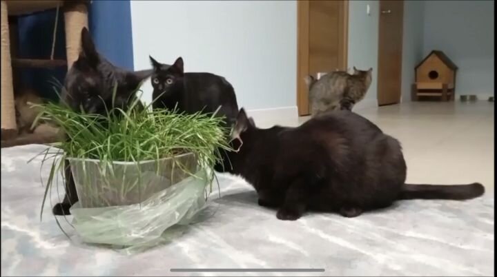 А лето уже не за горами, пора включать в рацион больше зелени, чтобы очистить организм и выглядеть блестяще. Столько полезного содержится в растительной пище, что даже такие хищники, как резиденты одного из воронежских котокафе, с жадностью набросились на плошку со специальной кошачьей травой. Примечательно, что полакомиться растительной пищей первыми прибежали именно черныши. Их так много, что для этой плошки они могут стать газонокосилками! Заберите себе одного из этих котеек и порадуйте его личной плошкой с кошачьей травой. Котик Лунтик Черный, как пантера, а зеленые глаза — словно весенняя травка. Этот мальчик очень разговорчивый, хорошо общается с другими котиками и даже является инициатором многих игр между ними. Если Лунтику что-то не понравится, он скажет вам грозное «Мур», но потом обязательно придет мириться. Лоток и когтеточку наша пантера освоила прекрасно, любит играть не только с котиками, но и с многими игрушками. Немного стесняется новых людей, но, если с ним хорошо поз