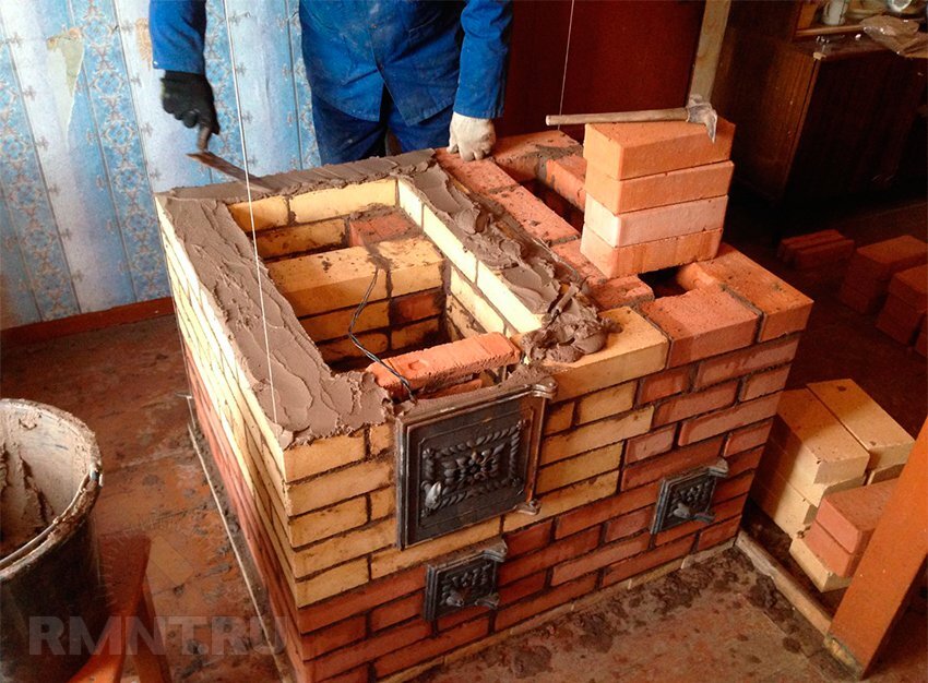 Ширина горизонтальных швов не должна превышать 5 мм, а вертикальных — 3 мм. Очень важно швы заполнять раствором полностью. Все внутренние поверхности печи швабруются мокрой тряпкой.