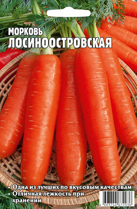 Морковь Лосиноостровская - среднепоздный сорт (90-100 дней). Она отличается универсальностью использования, употребления в свежем виде, приготовления блюд, консервации, заморозки, приготовления соков. Сорт богат разнообразными витаминами, в том числе бета-каротином. Сохраняет свои качества в погребе до 6 месяцев.