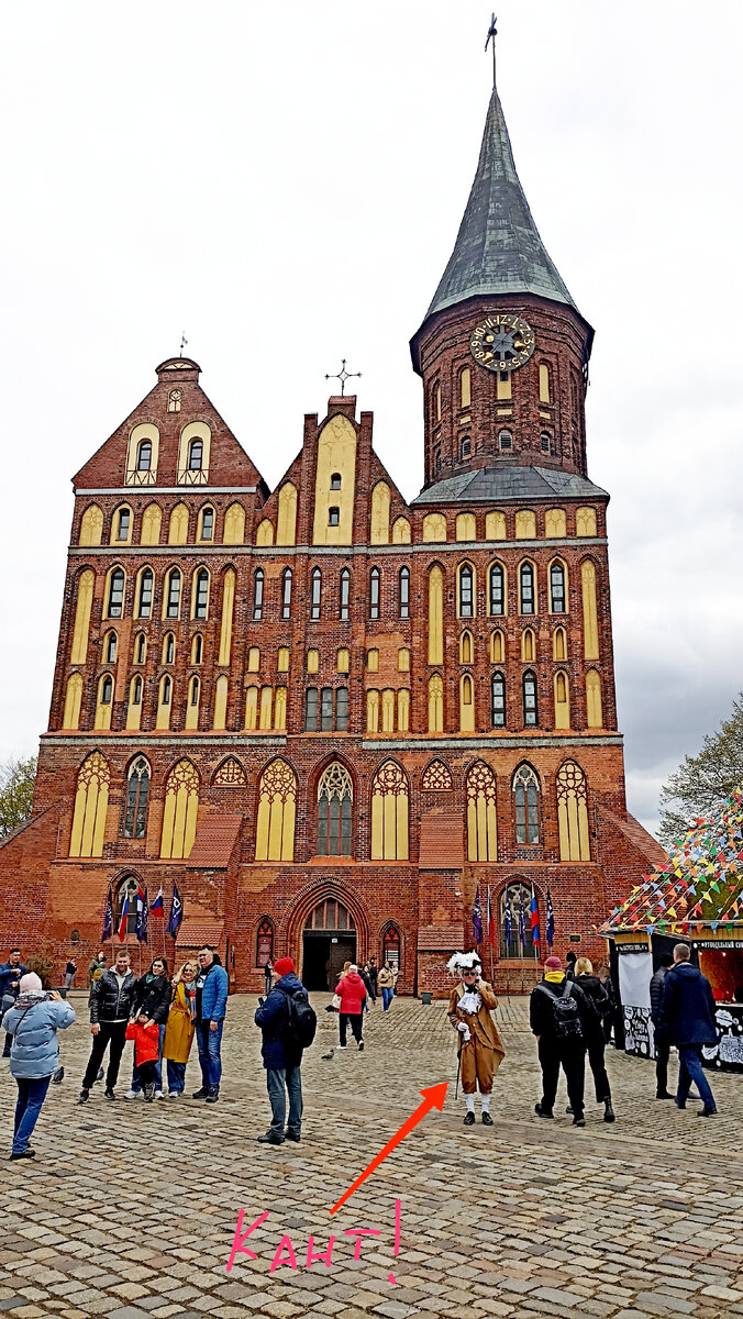 Вот перед вами Кафедральный собор на острове Канта...И вот, собственно, "сам" Кант, ведущий увлечённо научную дискуссию с помощью современного средства связи...Как говорится, глазам не верю!
