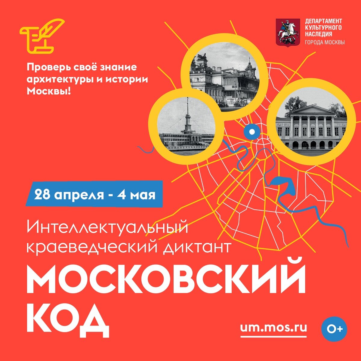 Диктант пройдет на городских площадках Москвы, в проекте «Активный гражданин» и на портале «Узнай Москву». С 28 апреля по 4 мая в столице пройдет VII краеведческий диктант «Московский код». Горожане смогут проверить свои знания, ответив на 20 вопросов об истории и архитектуре Москвы. Принять участие можно как в офлайн-, так и в онлайн-формате. Краеведческий диктант «Московский код» входит в программу событий Дней исторического и культурного наследия. Начиная с 2020 года диктант написало более 255 тысяч человек. По традиции очные диктанты проходят в культурно значимых пространствах города, а вопросы зачитывают лучшие московские краеведы, историки и гиды. В этом году впервые вопросы дистанционного диктанта будут поделены на четыре возрастные категории, три из которых предназначены для детей разных возрастов, а одна — для взрослых. Благодаря этому каждый участник сможет узнать для себя что-то новое о столице. Для того, чтобы принять участие в диктанте, необходимо зарегистрироваться на са