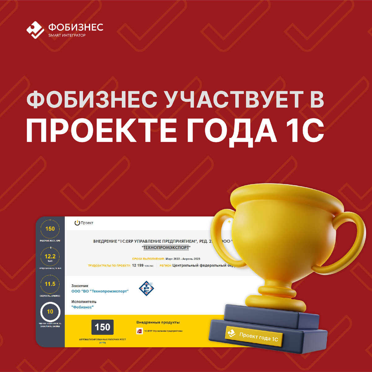 В результате проекта было автоматизировано 150 рабочих мест и затрачено 12 199 человеко-часов специалистов. Ссылка на номинацию