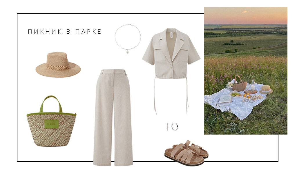 Иногда нам всем нужно сменить обстановку, чтобы хотя бы ненадолго сбежать от повседневных забот и задач. И долгожданные майские праздники — та самая возможность поставить все рабочие дела на паузу и устроить вылазку на природу, заняться любимым хобби или просто хорошенько выспаться. В шумной компании друзей, в кругу семьи или в соло — у вас еще будет время определиться, как и с кем вы проведете длинные выходные, а вот стильной и удобной одеждой на эти дни лучше запастись заранее. Для тех, кто прямо сейчас находится в поиске идей, где провести весенние каникулы, мы подготовили 5 идей досуга и, конечно же, собрали комфортные образы для каждой из них. Пикник в парке Что может быть лучше, чем семейный обед на природе или романтический вечер с любимым человеком с панорамными видами на закат? Всё, что вам нужно — это захватить с собой мягкий плед, корзинку с любимой едой и наслаждаться парком, утопающим в одуванчиках и ромашках, под пение птиц и шелест свежей травы. Не забудьте сделать серию