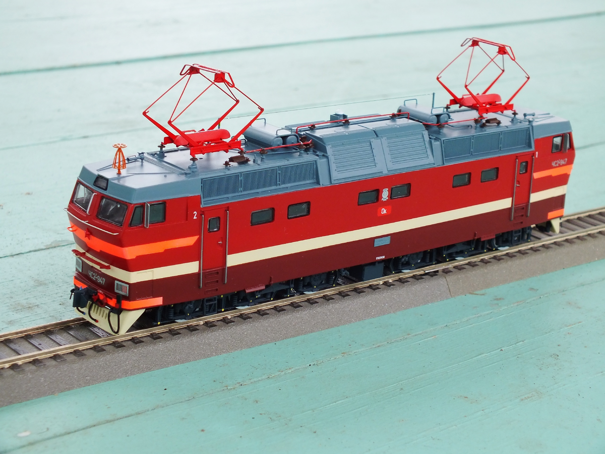 Представляю Вашему вниманию очередную модель. изготовленную моделистом Антоном Ходаковым. Речь идет о модели электровоза ЧС2т-947, депо Ленинград-Пассажирский-Московский. Модель изготовлена в масштабе 1:87 (типоразмер Н0). Прототип модели в 1981 году был передан в депо Мурманск, откуда в 2001 году в виде "сарая" на своих осях вернулся обратно в Санкт-Петербург, где и был порезан в 2005 году. Модель собрана из набора от Вячеслава Нетужилова, с небольшими авторскими доработками, которые коснулись улучшения внешнего вида. Так были установлены: розетки а/с, тормозные рукава от Ивана Семёнова, высоковольтные пинчи, кронштейны расцепителей-ARtmodel, от Владимира Бражника использованы колесные пары, автосцепки, приемные катушки АЛСН, некоторые элементы фототравления. Часть высоковольтного оборудования на крыше от "Модель-Экспресс". Поручни в ките предлагаются из пластика, поэтому незамедлительно были заменены на новые из латунной и стальной проволоки. Токоприемники от Дмитрия Анютина (СвеТТоф
