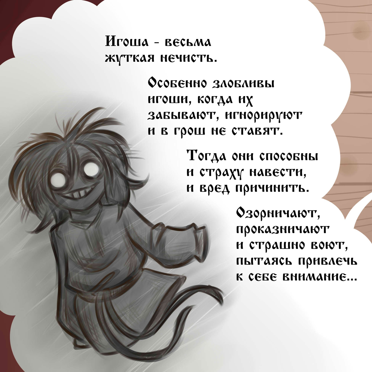Тут будет сразу две страшные нечисти. И с одной из них мы можем столкнуться в реальной жизни, просто легко и просто. Уже много дней все никак не могу нарадоваться на то, насколько много у нас талантливых и интересных авторов. Скажу честно, если бы не они, мне было бы сложно протянуть сейчас с блогом. Подъем у меня рано, возвращаюсь хоть и не очень поздно, но без ног и рук. Чтобы сесть за канал, мне нужно минимум минут 40 посидеть. Просто посидеть. Ведь на складе ВБ сидеть нельзя. Подъем у меня в 5 утра, отбой в 10 вечера. Периодически просыпаюсь от тыгыдыков маминых котов. Скажу честно, хоть я и сохраняю позитив, такой ритм жизни мне крайне сложен. И как хорошо, что есть такие авторы, как Анастасия, которые поднимают настроение своим творчеством! Автор комиксов: Застенчивый упыpь