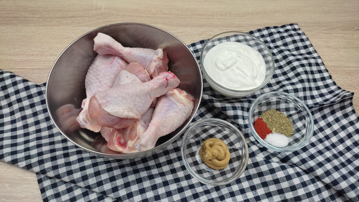 Рецептов приготовления куриного мяса безумное множество. Ведь каждый готовит маринад на свой вкус и свою фантазию. Сегодня решила поделиться рецептом прекрасного маринада для куриного мяса. Благодаря ему мясо становится нежным, сочным и тает во рту. Просто невозможно оторваться. А самое замечательное, что все ингредиенты обычно есть у вас дома. Очень вкусный и бюджетный рецепт. Для маринада понадобятся лишь сметана, горчица и ваши любимые специи. Готовьте такие голени почаще и ваши близкие скажут вам спасибо. Не забудьте приготовить гарнир. К такому мясу подойдет практически любой, но я бы посоветовала приготовить картофель по-деревенски. Такое сочетание хрустящего нежного картофеля и куриного мяса никого не оставит равнодушным Ингредиенты: Голени куриные 8 шт Сметана 150-200 гр Горчица 2 ст.л Паприка 1 ч.л Смесь трав 1 ч.л Соль по вкусу Подготавливаю все необходимые ингредиенты, чтобы все было под рукой. Первым делом готовлю маринад. В небольшой миске смешиваю сметану, , паприку и лю
