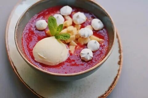 Супе из клубничной пелицы с добавлением мельчайших кусочков манго!