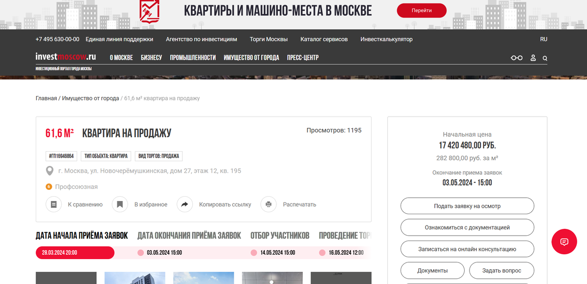 В меню “Покупка недвижимости для всех” можно посмотреть текущие объекты к реализации. Частично они дублируются на сайте Мой Адрес.