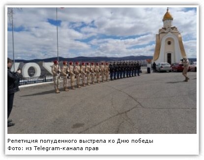 Репетиция полуденного выстрела в честь празднования Победы в Великой Отечественной войне прошла на Титовской сопке в Чите днём 27 апреля. Об этом сообщает ИА ChitaMedia со ссылкой на Telegram-кагнал (18+) правительства региона. Руководил процессом губернатор Забайкалья Александр Осипов. Отмечается, что он подсказал, где лучше поставить технику и куда встать знаменной группе. По словам главы региона, необходимо сделать всё так чтобы любой желающий сюда смог приехать и ему было видно как выносят знамена, и как производят выстрел.