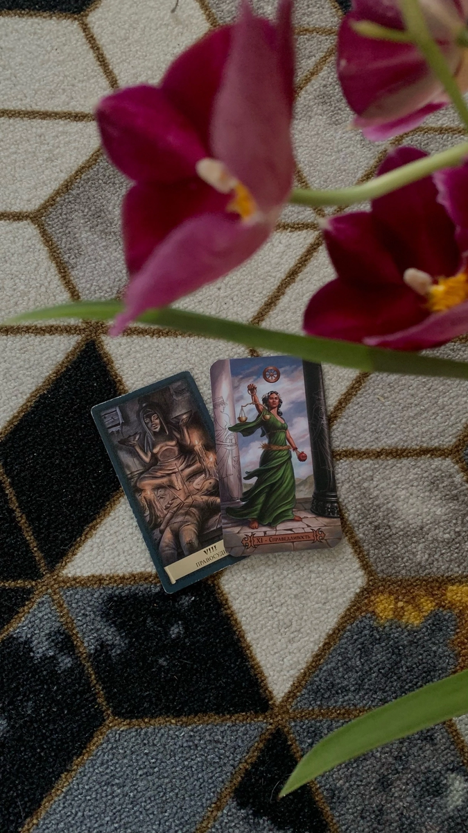 Один из моих любимых арканов, потому хочу немного рассказать о своем взгляде на него. Карта чести и достоинства, карта холодного рассудка, энергия которого может с самого высокого пьедестала с легкостью шваркнуть на дно. (Яркий пример: Елена Блиновская.) Говорят, что якобы по данному аркану можно откупиться материей. Но так ли это? Джастис в Черном Гримуаре нас символично отсылает на область анахаты, где, собственно, и рождаются наши чувства и эмоции. Она говорит о том, что "Вот, дорогой мой, не так страшен твой поступок, ведь куда страшнее реакция на деяние". И ведь правда, последствия мы пожинаем в зависимости от уровня реакции человека на ту или иную ситуацию. В колоде Современного заклинателя гранат в искалеченной руке отсылает нас на мысль: " Ты можешь дать слабину своим желаниям и чувствам, но какова цена секундного удовольствия?" Я не зря привела в пример ситуацию с Еленой Блиновской, хоть и заезжена до мозга костей эта личность, но я придерживаюсь мнения, что данную перс