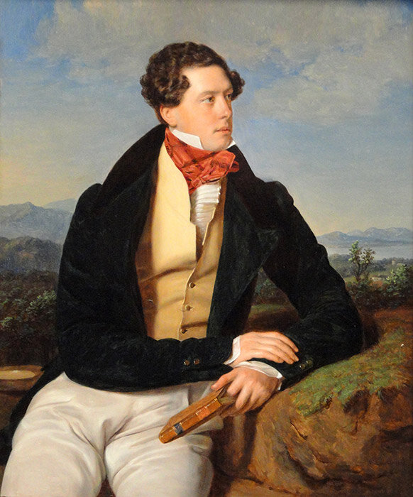 Помимо шейных платков носили и жабо, которое перешло из моды XVIII века. Но жабо носили в высшем обществе, все больше на приемы и балы. Как сейчас говорят, этот тренд пошел на спад.😉 А также при помощи шейного платка формировали складки и такой галстук тоже назывался жабо. Этот вариант уже был в тренде.